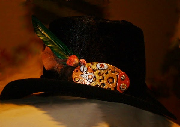 I am producing a number of Steampunk Hat Medallions to decorate your hats, turning just a regular chapeau into a Steampunk work. The gear themed medallions are lightweight as to not damage your head wear. Each piece is hand cut and assembled, hand painted as a work of art and sealed with with a water resistant coating. As art pieces they are not indestructible but I have taken care to make them as hardy as possible. So don't fold bend or mutilate and you should be fine.
